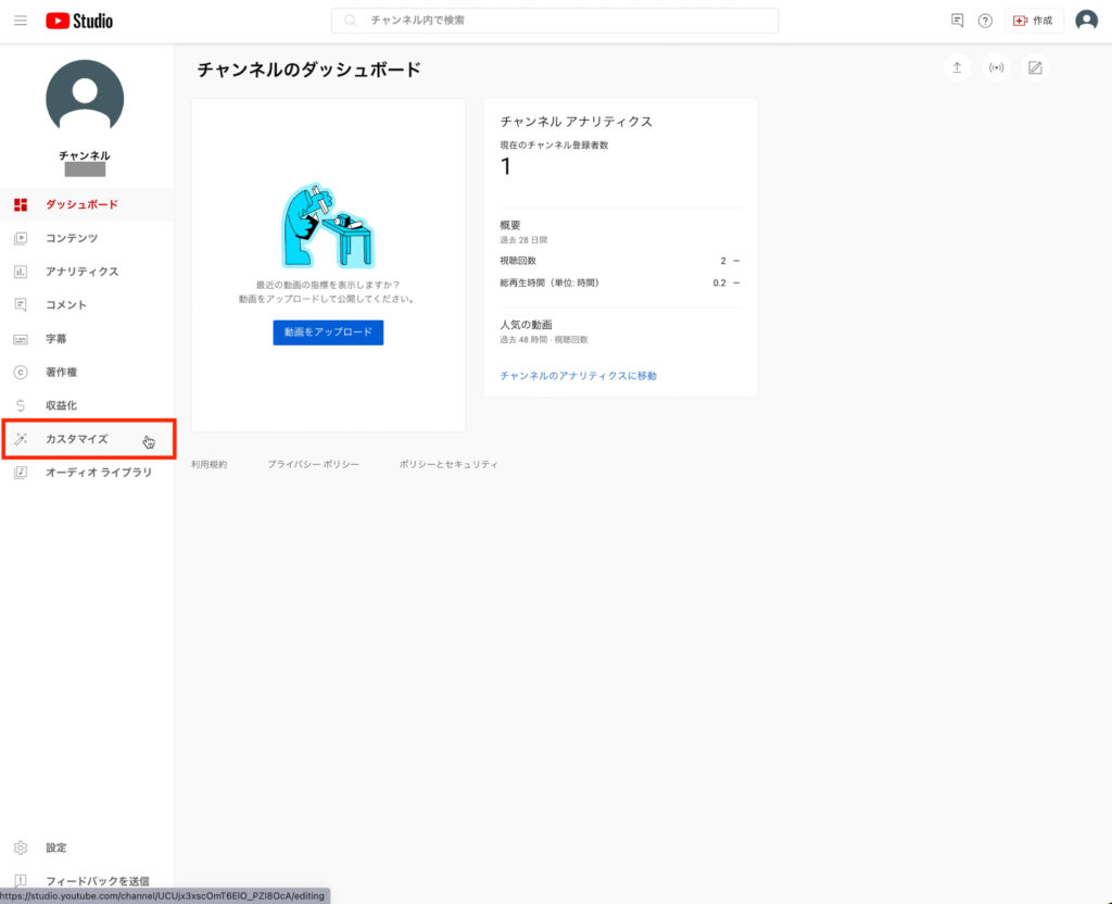 左のサイドメニューにある「カスタマイズ」をクリックします。