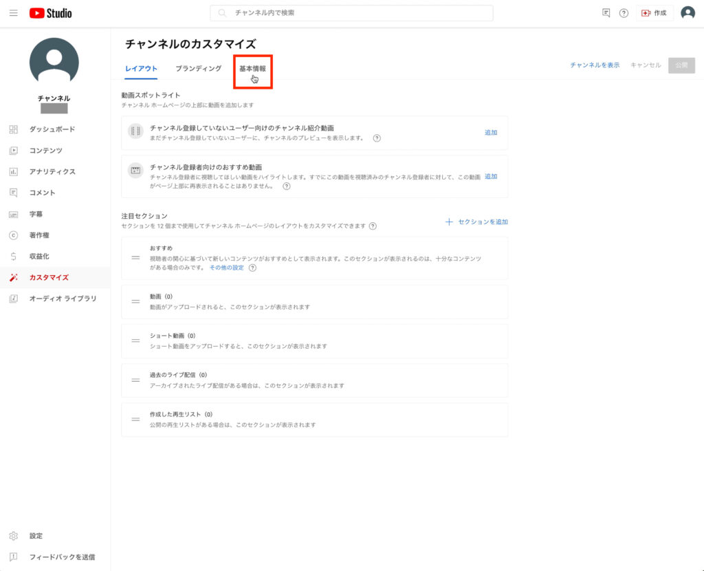「チャンネルに移動」と押すことでYouTubeチャンネルページ(ユーザーに公開されるページ)に移動できるので、そちらを押して実際に変更されているか確認しましょう。
