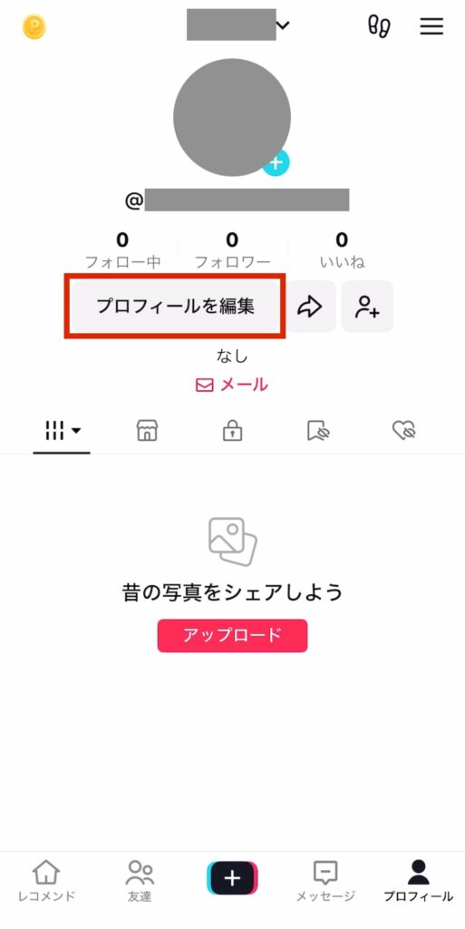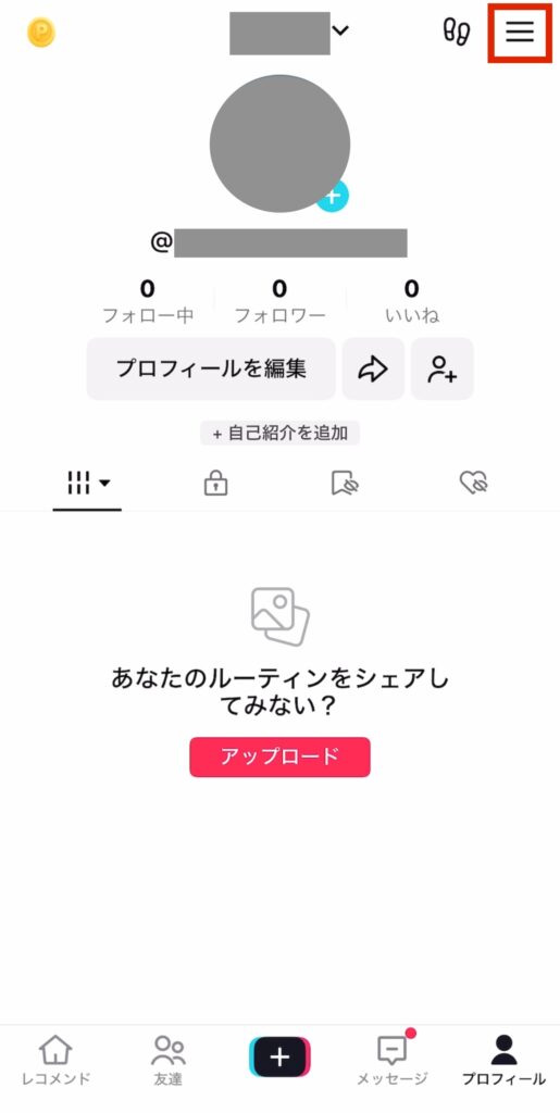 まずTikTokアプリを開き、プロフィール画面に移動します。