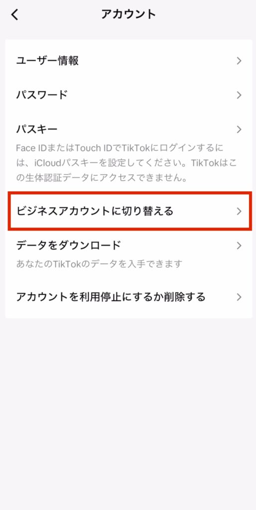ですのでビジネスアカウントに切り替えます。ビジネスアカウントへの変更料・利用料はかかりません。