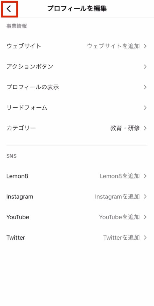 するとプロフィール編集画面へと戻るため、左上にある「<」をタップし、プロフィール画面へ移動します。