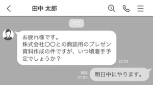 また、「本日中」「週明け」などの言葉を自分に都合よい定義で勝手に定義しないこと。