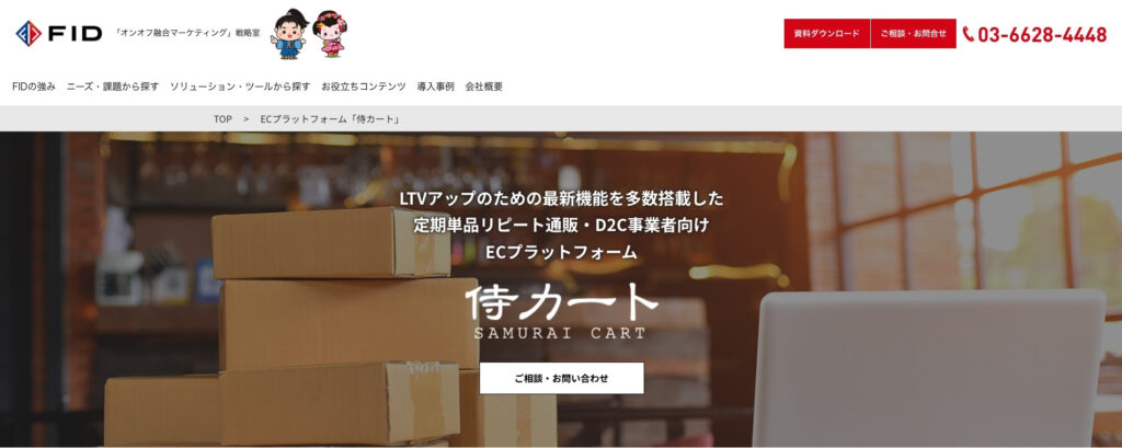 侍カートは、定期通販から総合通販まで幅広い販売形態に対応し、高い拡張性で企業固有の要件を実現できるカスタマイズ特化型ASPカートです。