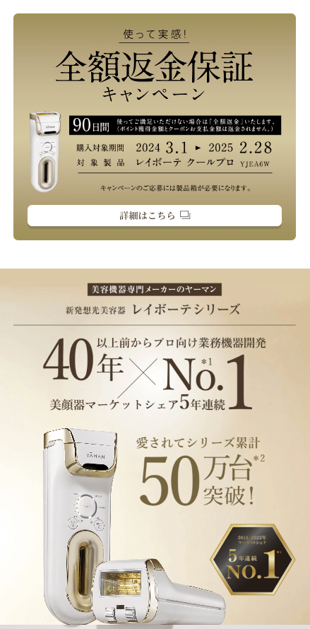 ヤーマン株式会社の美顔器・脱毛器「レイボーテシリーズ」