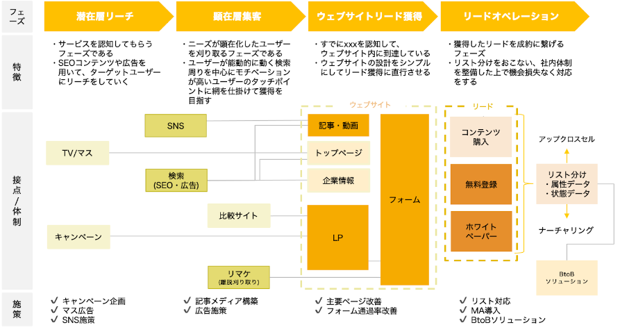 リードジェネレーションの段階は、BtoBマーケティングにおいて最初に顧客と接点を持つプロセスといえます。