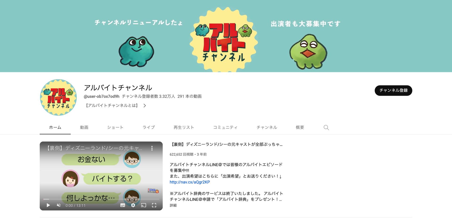 学生向けにエンタメを混ぜながら、さまざまなアルバイトのやりがい・賃金などを紹介するチャンネルです。