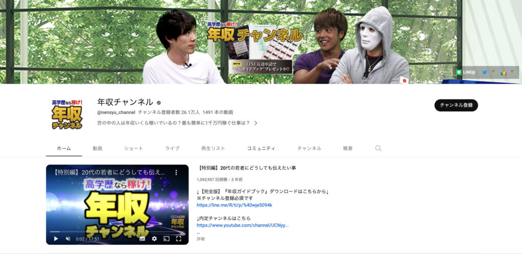 各企業の収入や働き方、社会人としての基礎知識等を発信しチャンネル登録者26万人獲得。