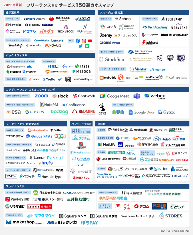 フリーランス向けのサービスには大きく分けて以下のようなジャンルがあります。