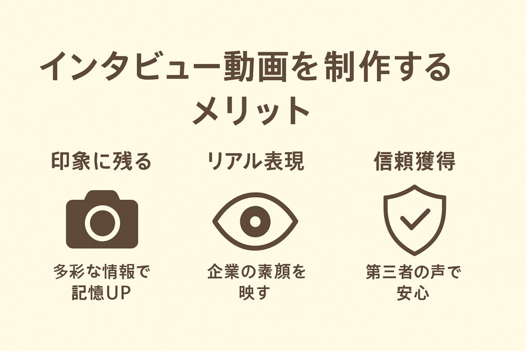 インタビュー動画を活用すると、以下のようなメリットがあります。