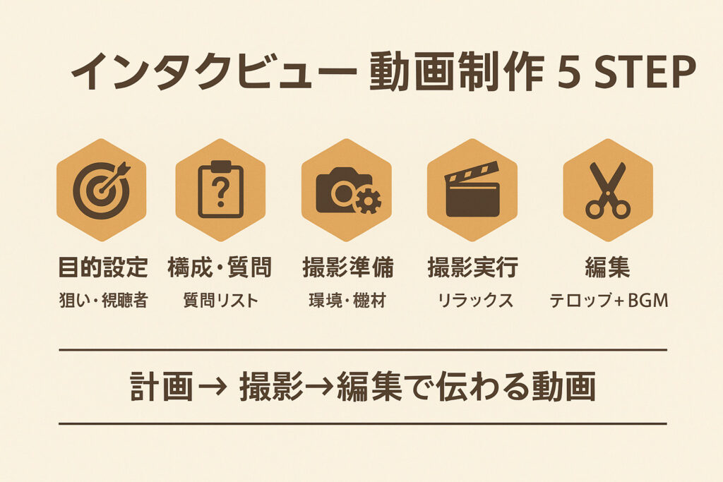 魅力的なインタビュー動画は、行き当たりばったりではなく、しっかりとした計画と丁寧な実行によって生まれます。ここでは、効果的なインタビュー動画を制作するための基本的な5つのステップを解説していきます。