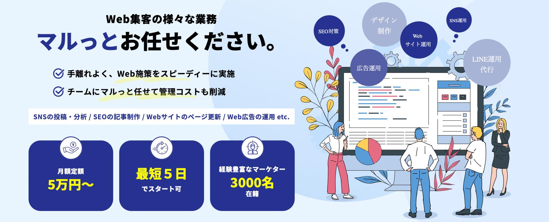 | 費用感 | 月額5万円〜(制作費0円・追加費用なし) |