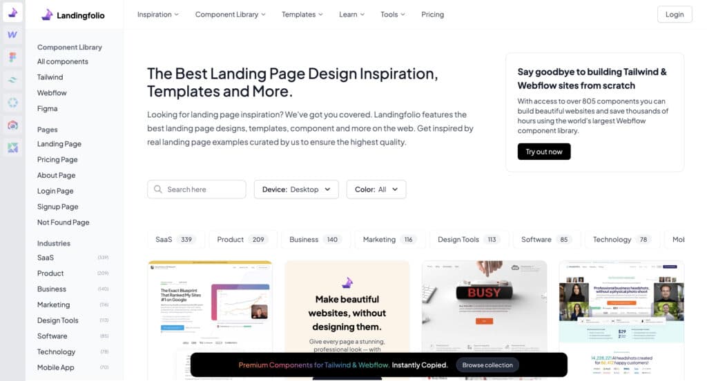 人気のLPデザインや最新のLPデザインを知りたい場合におすすめです。豊富な機能を活用して、LPデザインの制作だけでなく、キャッチコピーの作成にも役立ちます。