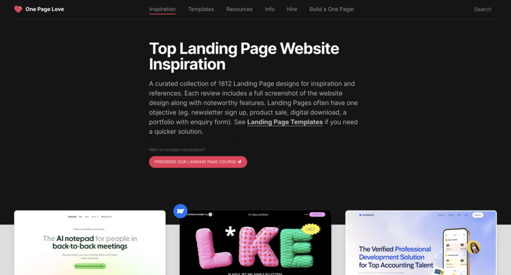 「ランディングページ集めました。」は2009年から運用されているため、LPデザインの参考サイトまとめ集として掲載歴が長く、LP制作で役立つような多くのLPデザインが掲載されています。