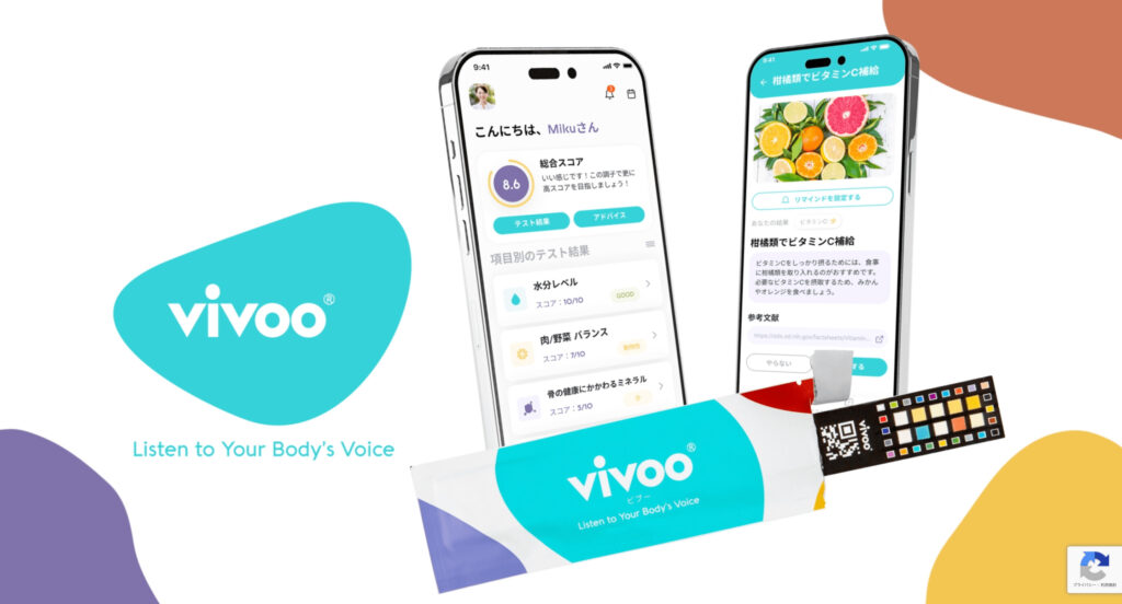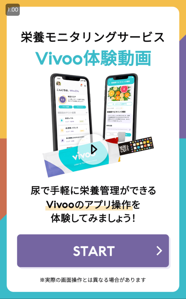 大塚製薬株式会社が提供する栄養状態モニタリングサービスの「Vivoo」の動画付きLPは、視覚的に訴求力の高い作りになっています。