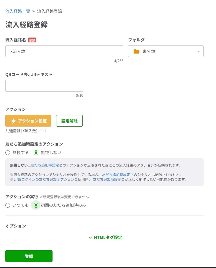 アクションを設定できるので、タグ付けや友だち情報の入力に使えるのもポイントです。