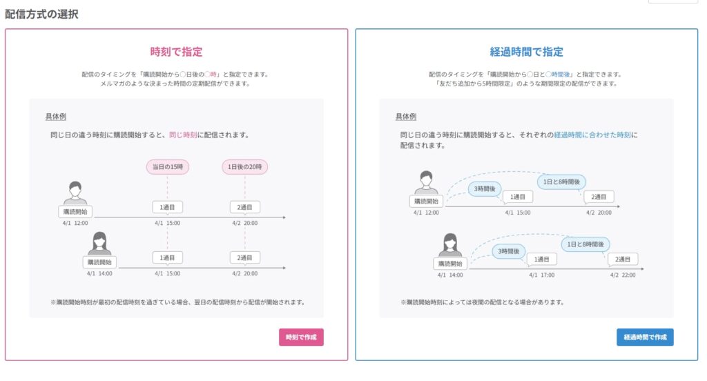 シナリオ配信は設定した友だちに、時間経過に応じた自動配信が可能な機能です。