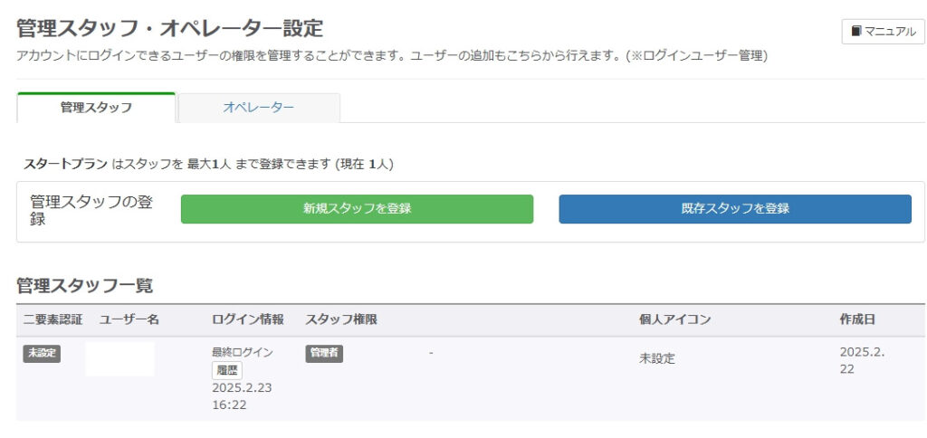 | スタッフ設定 | ✕ | ✕ | ◯ |