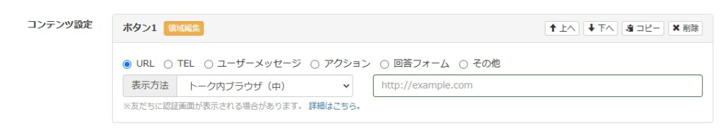リッチメニューにはコンテンツ設定でURLを直接貼れますが、基本的にやめたほうが無難です。