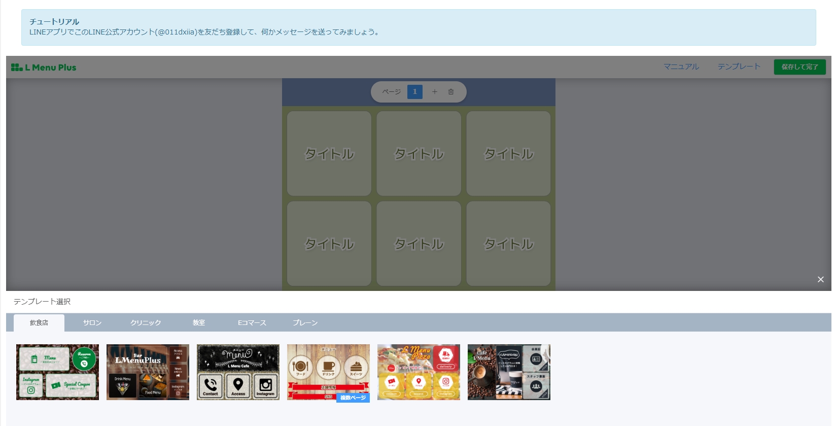 作成工程も簡単で、マニュアルのとおりに構成やデザインを選択するだけ。自分で画像を用意するよりも、はるかに少ない手間でリッチメニューを用意できます。