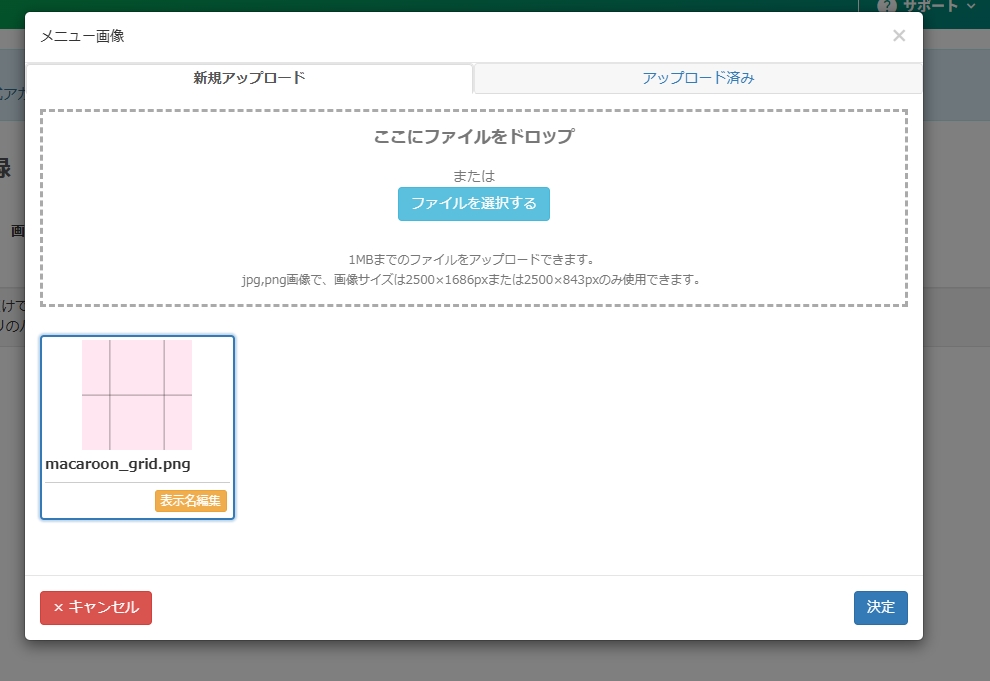 まず、リッチメニュー用の画像を準備します。リッチメニュー用の画像は、以下の規格に合わせて作成してください。