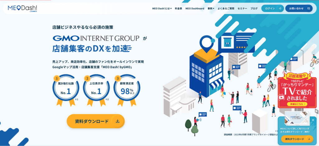 マキトルくんを確認するGMO TECH株式会社は、Googleマップ上位表示サービス「MEO Dash! byGMO」を提供するMEO対策会社です。GMO TECH株式会社の強みは以下の通りです。