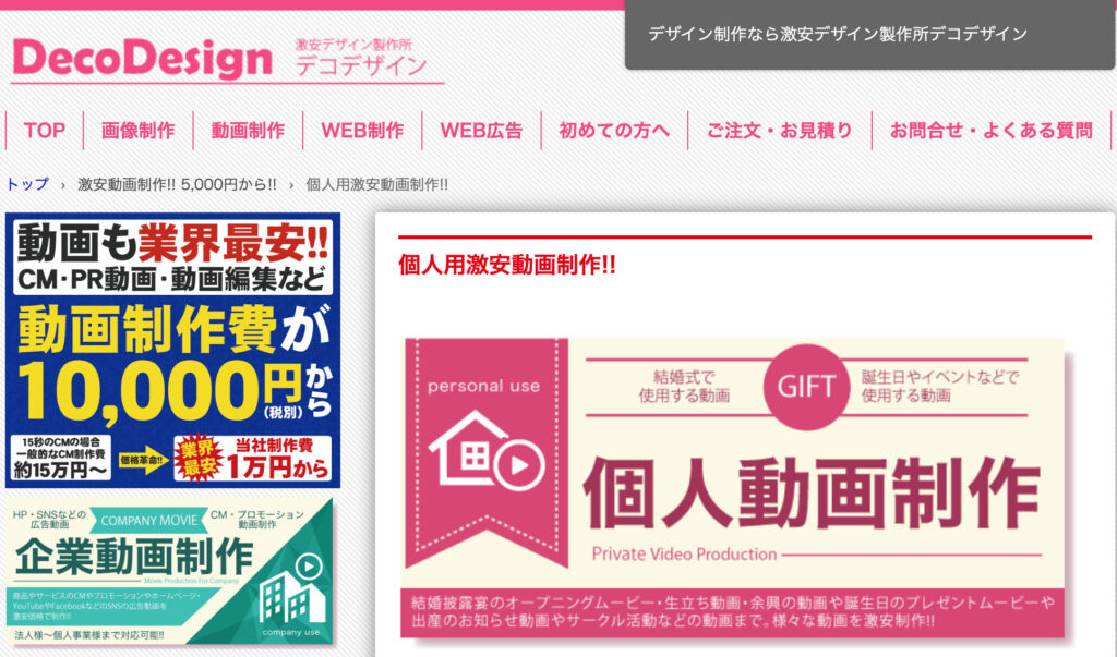 3万円から200万円程度の予算範囲に絞り、少数精鋭での効率的な制作体制を構築することで、手頃な価格を実現しています。