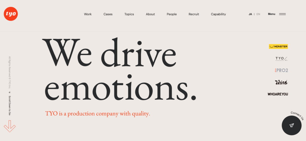 株式会社TYOは、40年以上にわたるCM制作で培ったノウハウを活かし、ターゲットの心を動かす映像制作会社です。KANAMEL株式会社(旧:AOI TYO Holdings株式会社)のグループ会社で、株式会社AOI Proと同じグループに属しています。