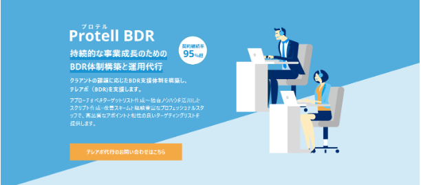 サービスは、戦略を立てて電話営業やオンライン商談につなげてくれる代行内容です。