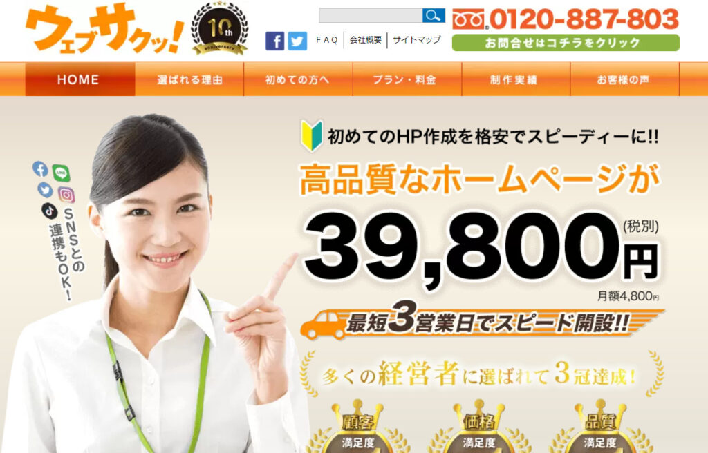 ハイファクトリは、良質なホームページ制作サービス「ウェブサクッ!」を39,800円から提供している会社です。