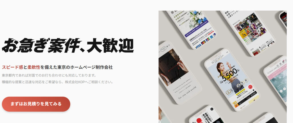 株式会社KOPが東京のホームページ制作会社です。店舗系の業者のホームページ制作が制作事例が豊富にあります。
