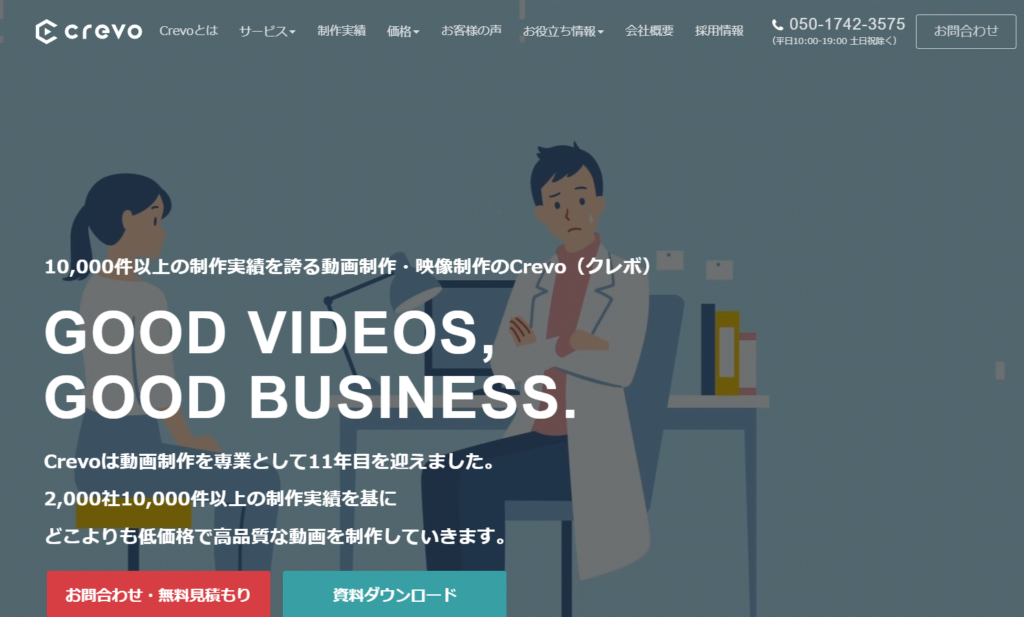Crevo株式会社は、幅広い表現手法を駆使したPR動画制作が得意な動画制作会社です。Crevo株式会社の強みは以下の通りです。