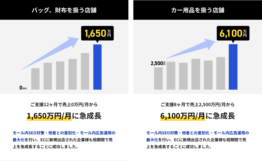 ある店舗では売り上げが0円/月から1,650万円/月へとアップし、短期間で大きな成果を上げました。