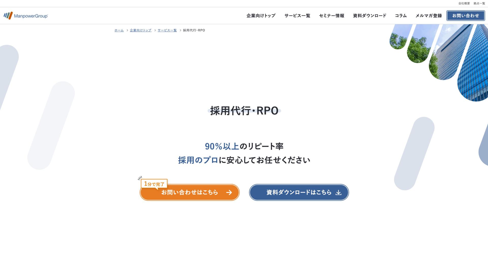 マンパワーグループ株式会社の提供するRPOでは、書類選考や面接も含め採用のすべての工程に関わる業務をアウトソーシングするのが可能です。