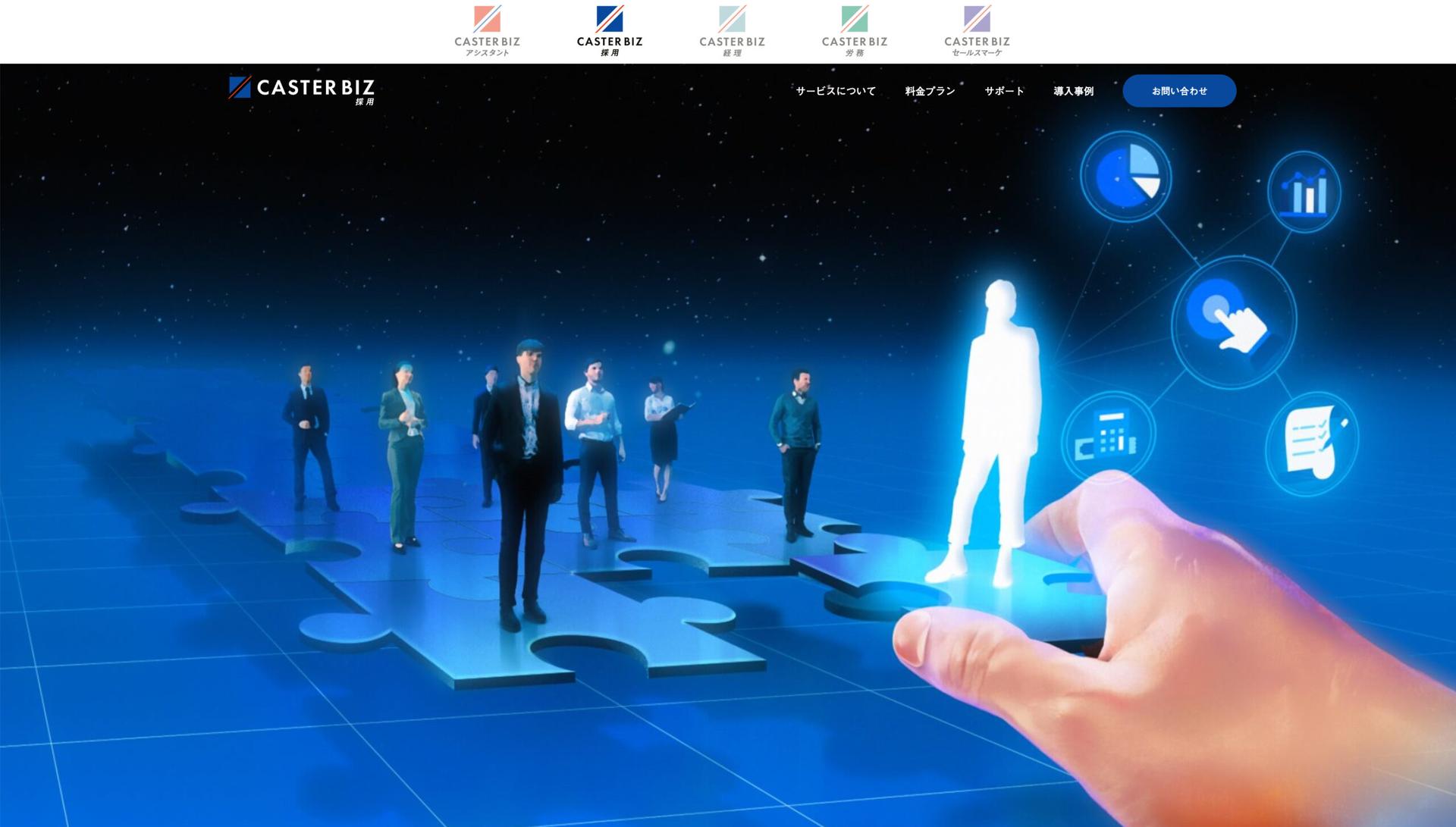 株式会社キャスターの展開する「CASTER BIZ採用」は、戦略立案からオプション次第では入社までの労まで一連の採用業務をサポート・代行するサービスとなります。