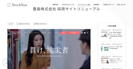 ちなみに豊島株式会社の採用サイトは、StockSunコンサルタントの宮原が担当いたしました。詳細の事例以下でも解説しています。