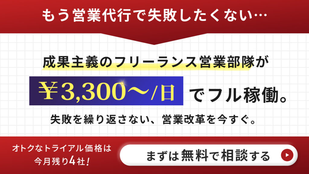 一方で、SFA・MAツールを活用したデジタル営業やマーケティング施策の連携には対応範囲が限られているため、「まずはテレアポから始めたい」「今いる営業メンバーに外部の力を加えたい」というケースに適しています。“小さく始める営業支援”の入口として検討しやすいパートナーです。