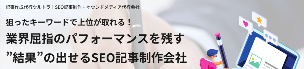 記事作成代行ウルトラは、文字単価4.5円〜という業界最安級の価格設定ながら、驚異的な成果を実現するSEO記事制作代行サービスです。