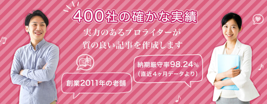 ライター選定から納品まで専任ディレクターが一貫してサポートするため、安定した品質とスムーズな進行が期待できます。