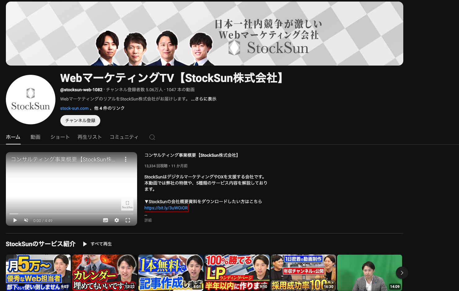 動画を通してユーザーの疑問を解決している点が特徴で、StockSunならではの認定パートナー制度とYouTubeを通した集客の相性の良さも成功要因の一つです。