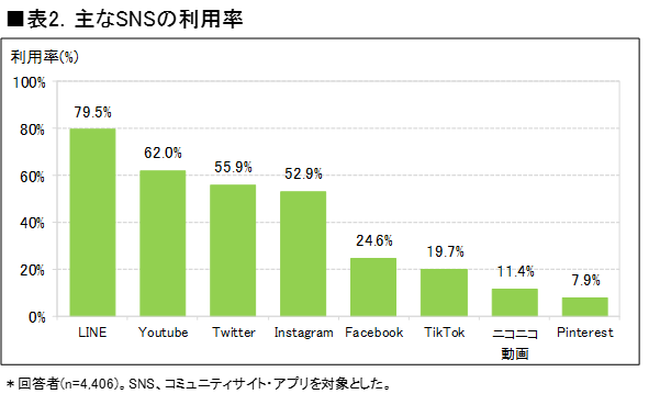 スマートフォンの普及と合わせて、SNSのシェア率も伸び続けています。