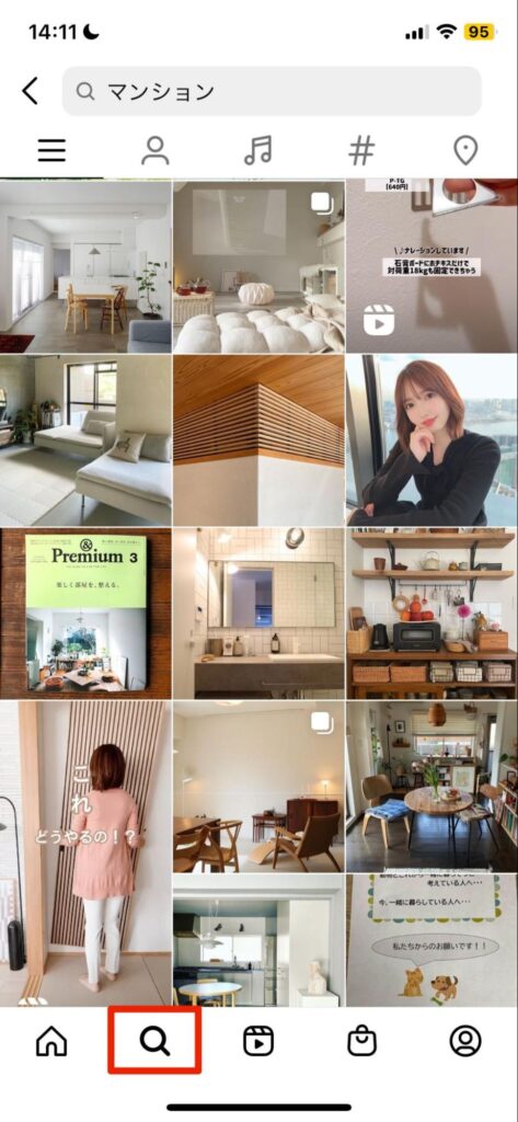発見タブとは、Instagramでいうところの虫眼鏡マークになります。
