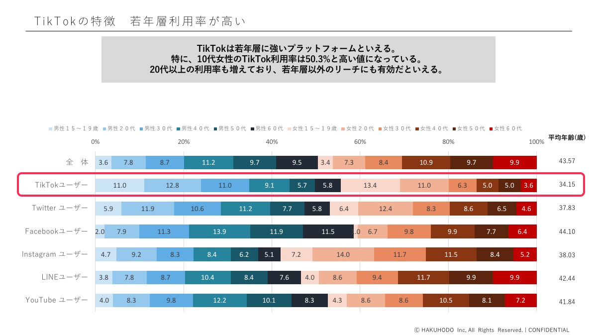 記事内でも何度か述べてきましたが、TikTokはユーザー年齢層が偏っています。