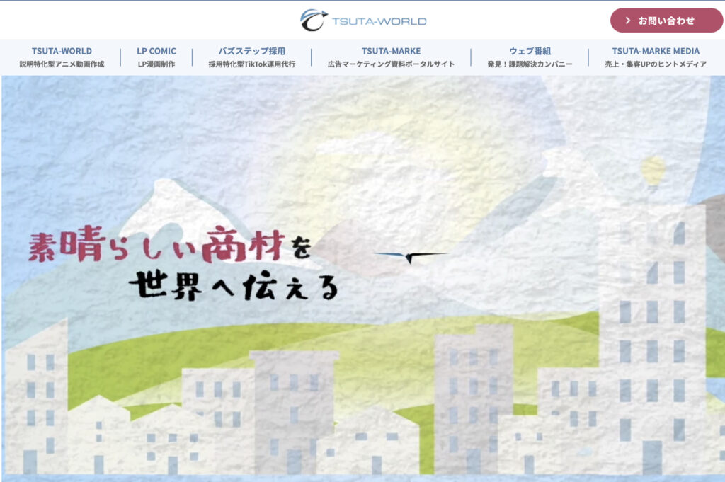 株式会社TSUTA-WORLDは、説明特化型アニメーション動画制作が得意な動画制作会社です。株式会社TSUTA-WORLDの強みは以下の通りです。