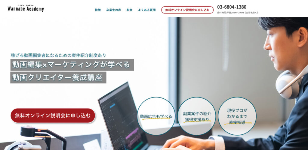 Wannabe Academy(ワナビーアカデミー)は、単なる「動画編集」ではなく「成果の出る動画制作」と「広告運用」まで学べるスクールです。