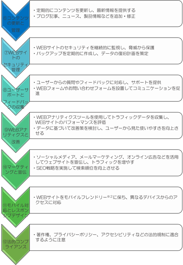 WEBサイト運営は継続的なプロセスであるため、これらのステップは周期的に繰り返されることがあります。