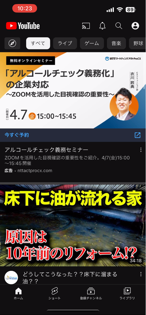 もしYouTube Studioをインストールした状態で、YouTubeアプリからStudioにアクセスすると自動的にYouTube Studioアプリが立ち上がり、このような画面となります。
