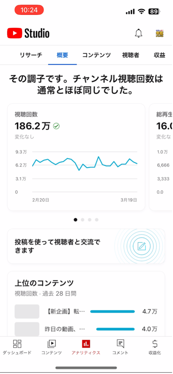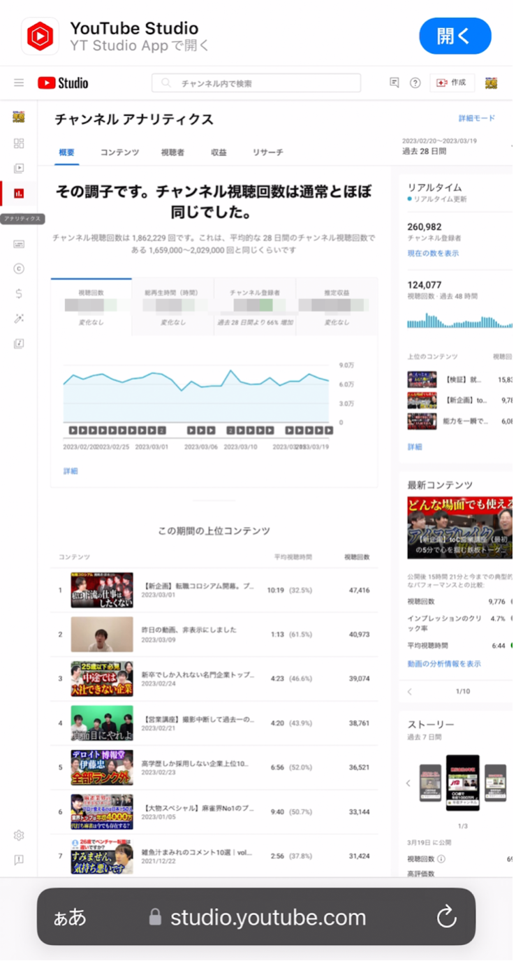 まず数字と向き合うことで、投稿した結果が分かります。多くの場合、動画を出す時には次の期待があるでしょう。