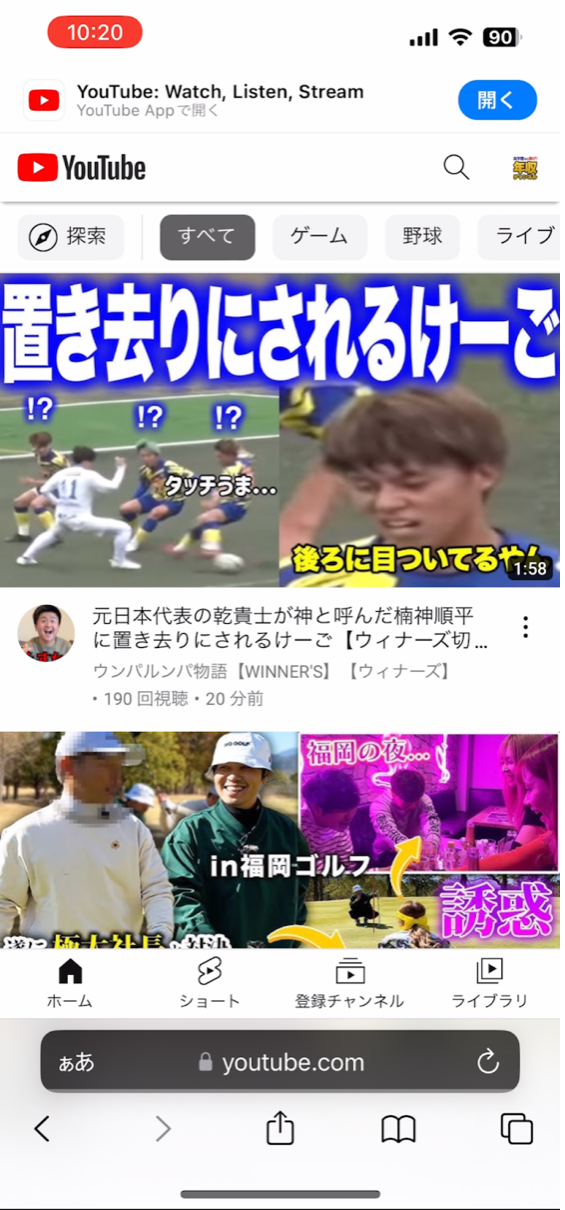 最後にWebページではなく、スマホのYouTubeアプリからアナリティクスを開く方法を解説します。