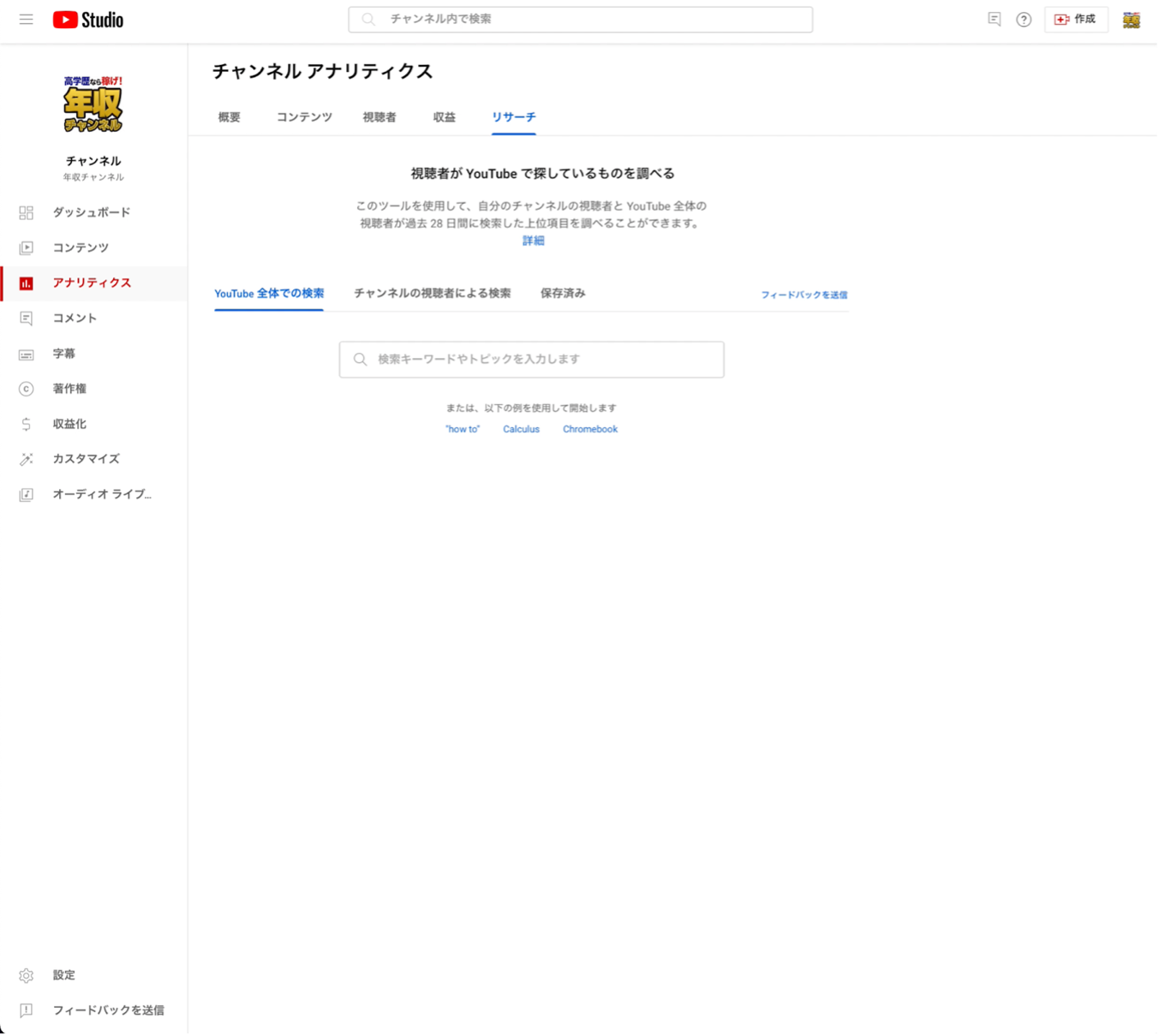 YouTube Studiosという管理ツールの一機能がこのアナリティクスです。