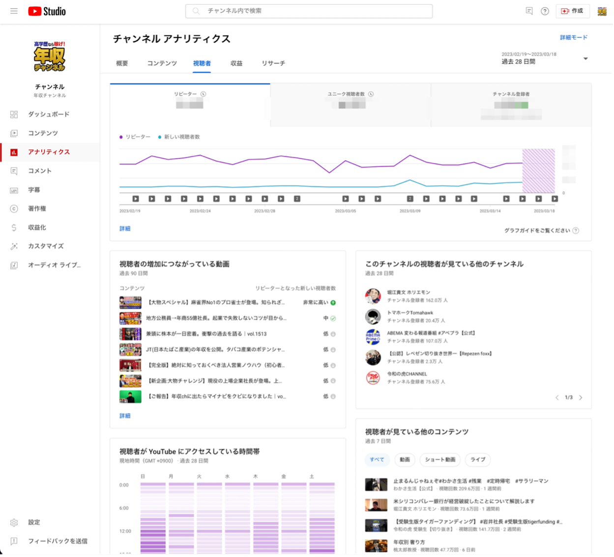 うまく伸びない時も同様、本来なら日々成長するはずのチャンネルなのに数字が右肩下がりな原因もアナリティクスを用いることで確認しやすくなります。